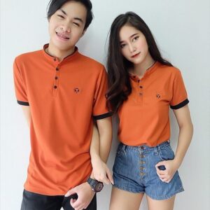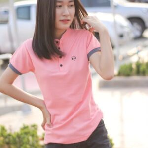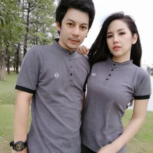 Tp02 เสื้อยืดคอจีนปกกระดุม สีกรม