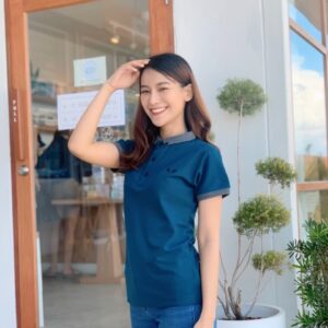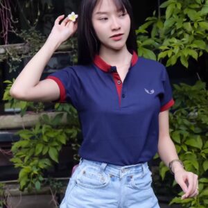 Tp04 เสื้อยืดคอจีนปกกระดุม สีคราม