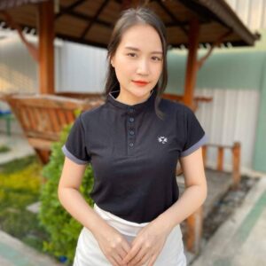 Tp01 เสื้อยืดคอจีนปกกระดุม สีขาว