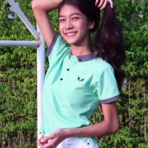 Tc002 เสื้อยืดคอจีนสีเขียวมิ้นต์